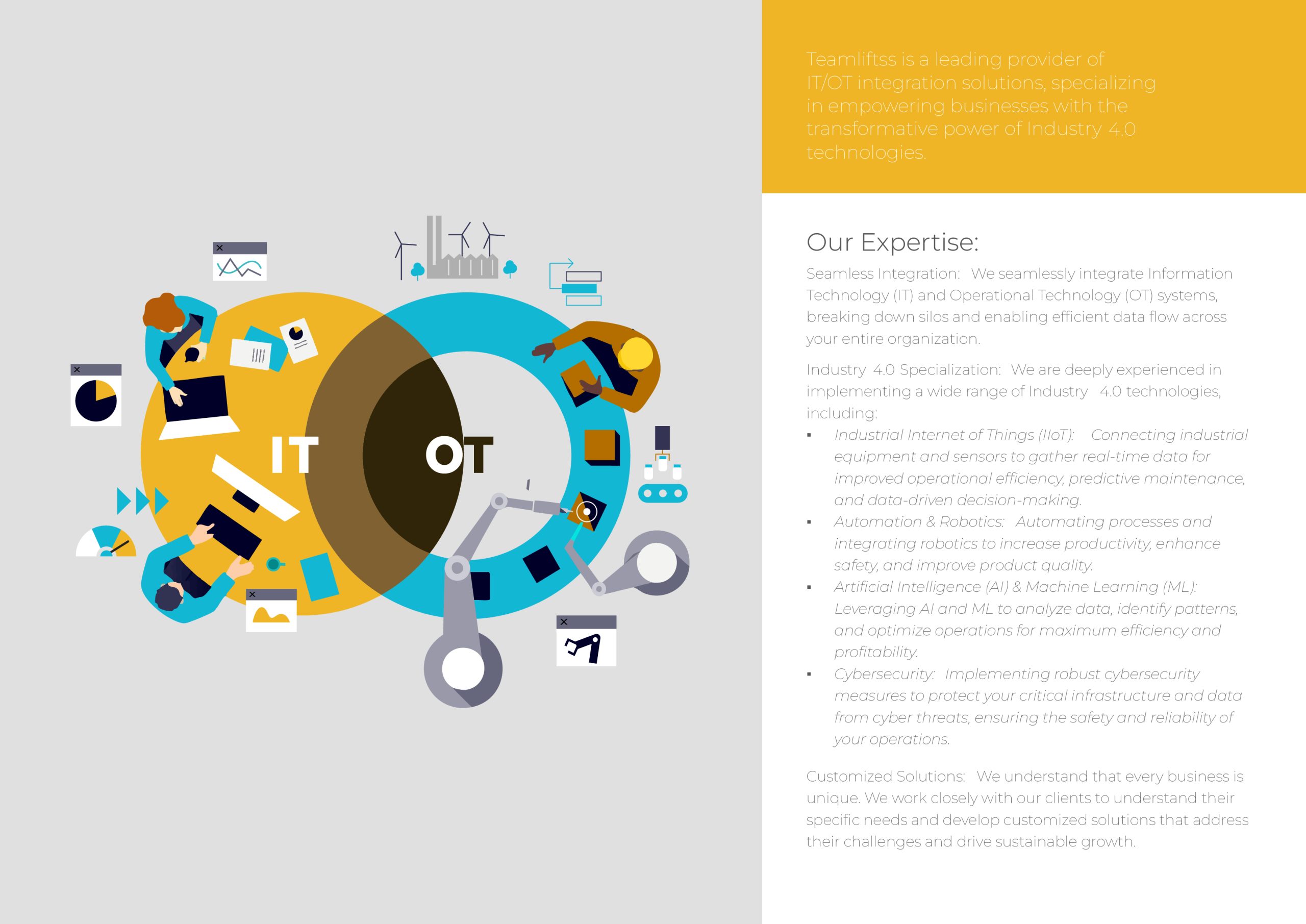 Teamliftss is a leading provider of IT/OT integration solutions, specializing in empowering businesses with the transformative power of Industry 4.0 technologies.
